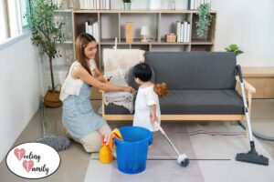 „Wir räumen zusammen dein Zimmer auf. Du die Autos, ich die Bücher.“