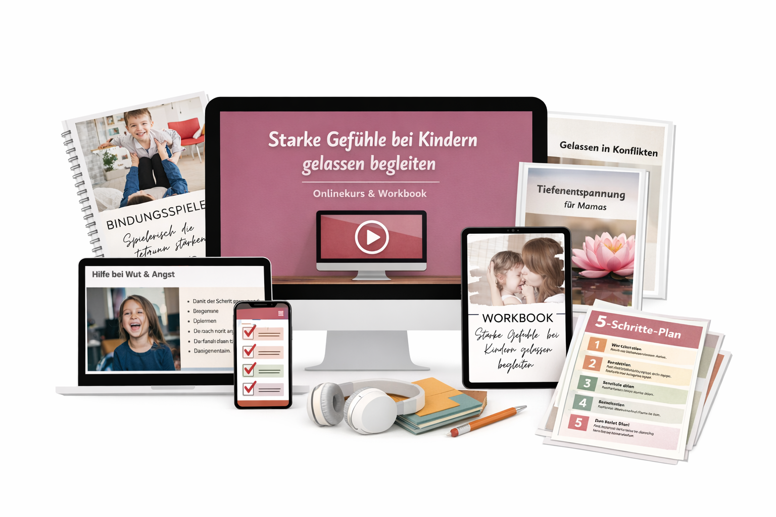 Der Kurs „Starke Gefühle bei Kindern gelassen begleiten“ zeigt dir Schritt für Schritt, was du in solchen Situationen machen kannst.